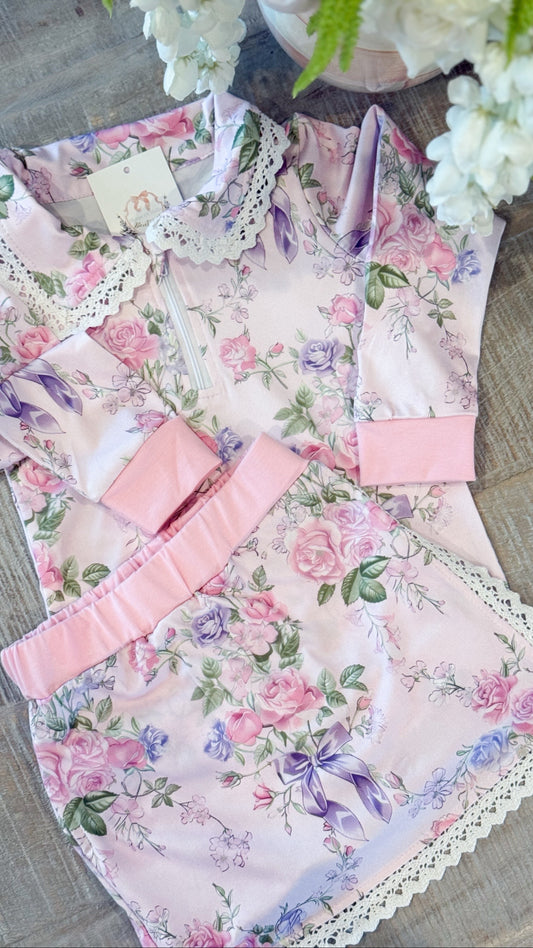 Girls Floral Lace Skort Set - PREORDER