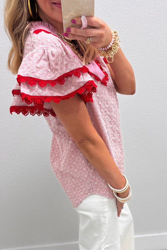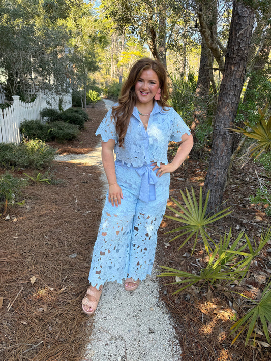 Sky Blue Embroidered Smocked Detail V Neck Short Puff Sleeve Mini Dress - PREORDER
