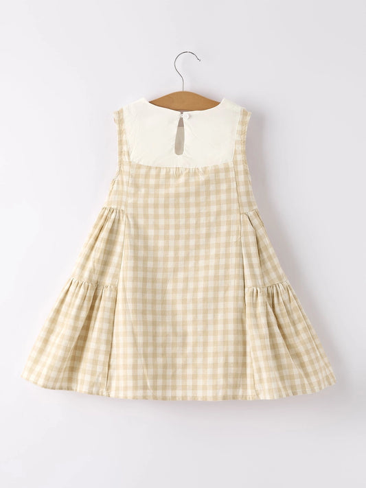 Apricot Plaid Embroidered Bunny Sleeveless Dress - PREORDER