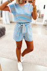 Sky Blue Stripe Raised Rib Loose Tee Drawstring Elastic Waist 2pcs Short Set - PREORDER