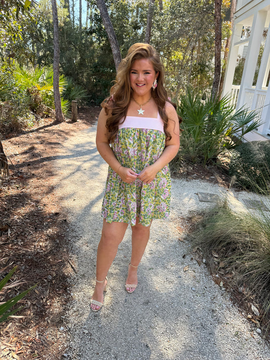Fresh Bloom Tie Shoulder Straps Mini Dress -PREORDER