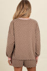Brown Checkerboard Long Sleeve Pullover and Shorts Set - PREORDER