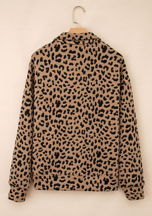 Brown Leopard Print Quarter Zip Sweatshirt - PREORDER
