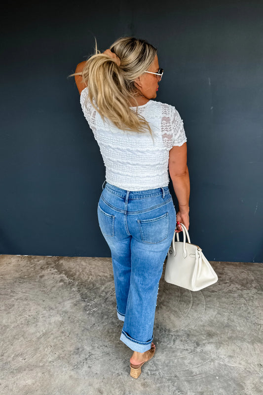 Blossom Acid Washed High Rise Cropped Wide Leg Jeans - PREORDER