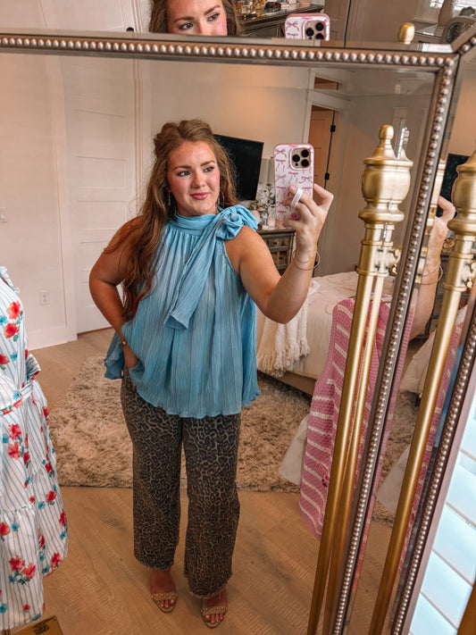 Brown Leopard Frayed Edge Wide Leg High Waist Jeans-PREORDER