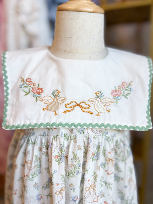 Vintage Floral Duck Embroidery Spring Girl Dress