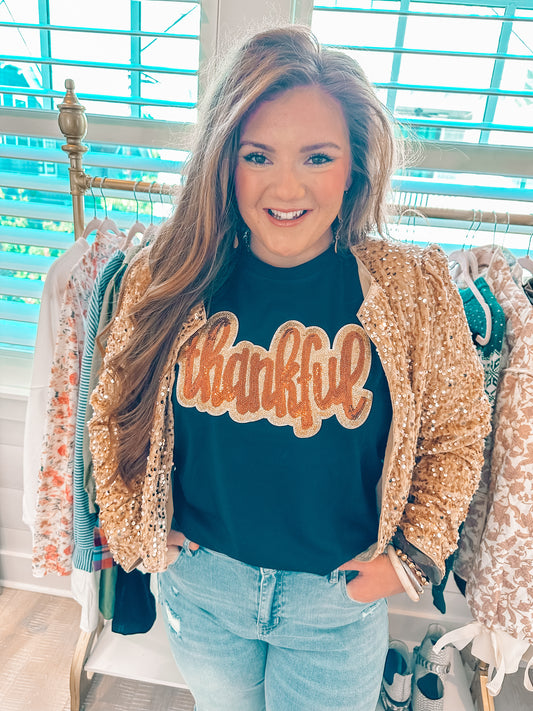Apricot THANKS Chenille Embroidered Sweatshirt