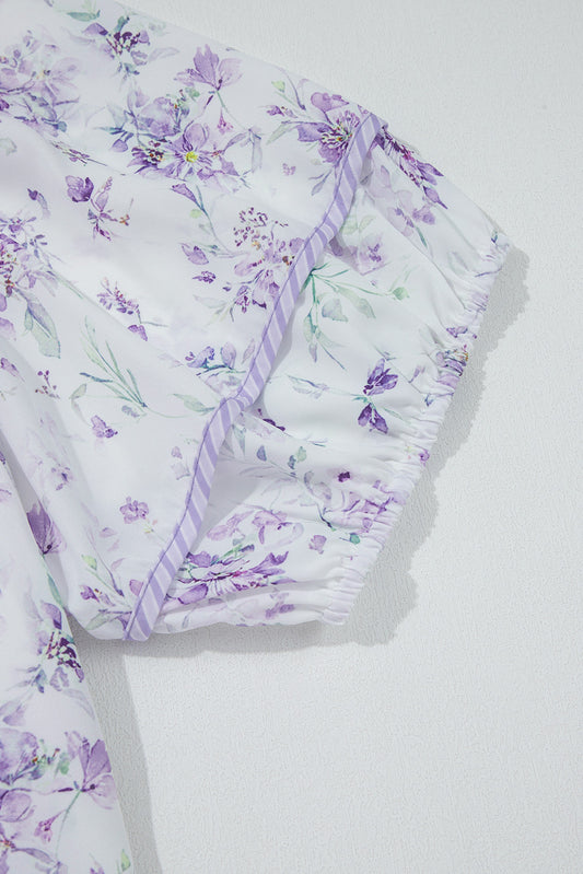 Purple Floral Trimmed Detail Split Neck Plus Size Top - PREORDER