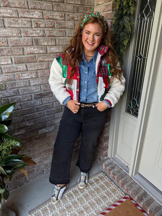 Pink Sequined HOLLY JOLLY Color Block Crew Neck Sweater