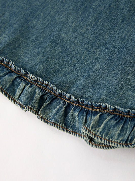 Vintage Denim Ruffle Girls Dress