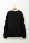 Black Sequin Cute Bow Ghost Graphic Crew Neck Halloween Sweatshirt