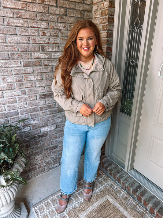 Laurel Green Zipped Pocket Cropped Hooded Utility Jacket - PREORDER