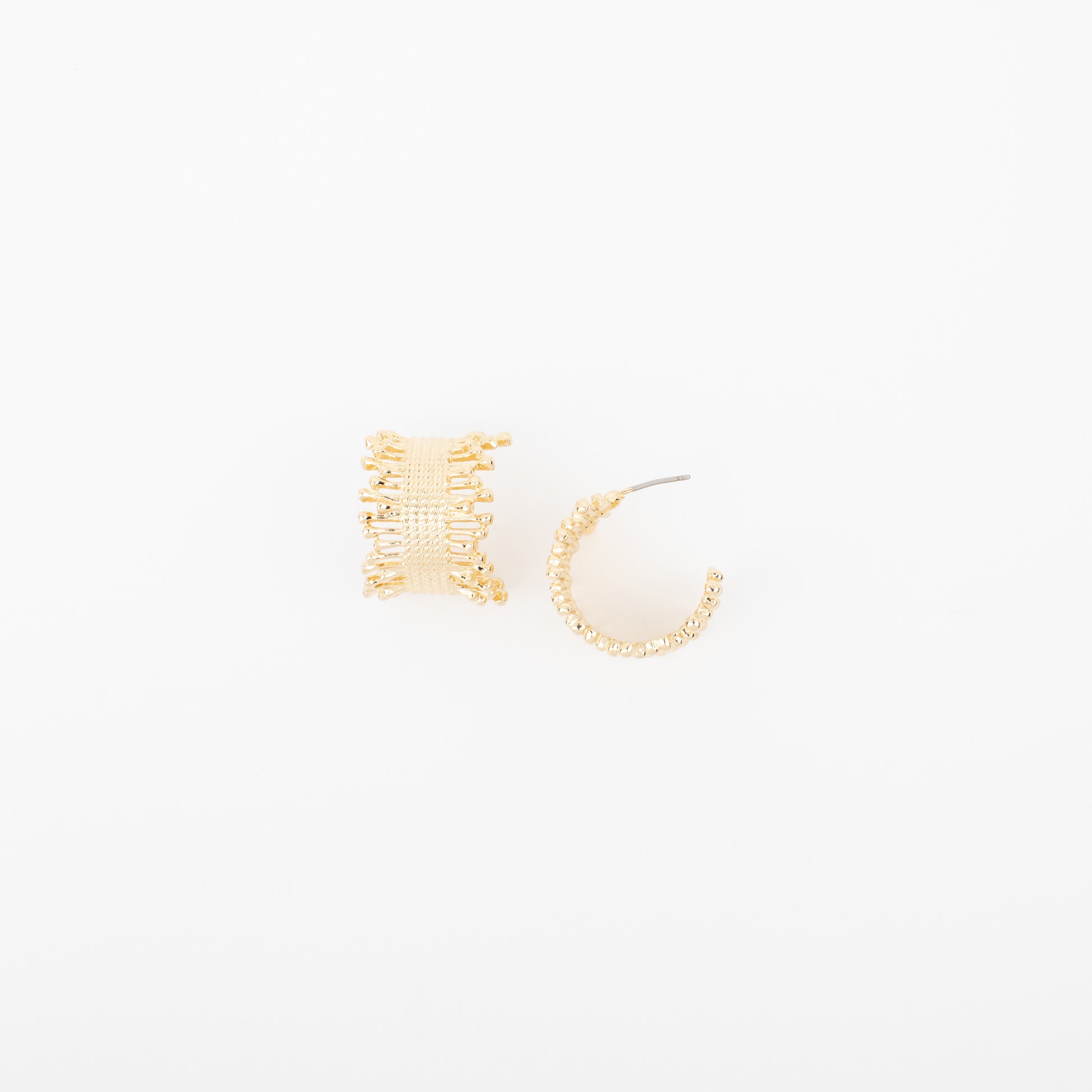 The Aylani Earrings deliver sophisticated style with their textured gold design and radiant beaded detailing. These 1" statement hoops catch light from every angle, adding dimension and visual interest to any ensemble. The secure disc back ensures comfortable all-day wear, whether you're heading to the office or out for the evening. Perfect for those seeking an effortless way to elevate their everyday look with a touch of luxury and shine.