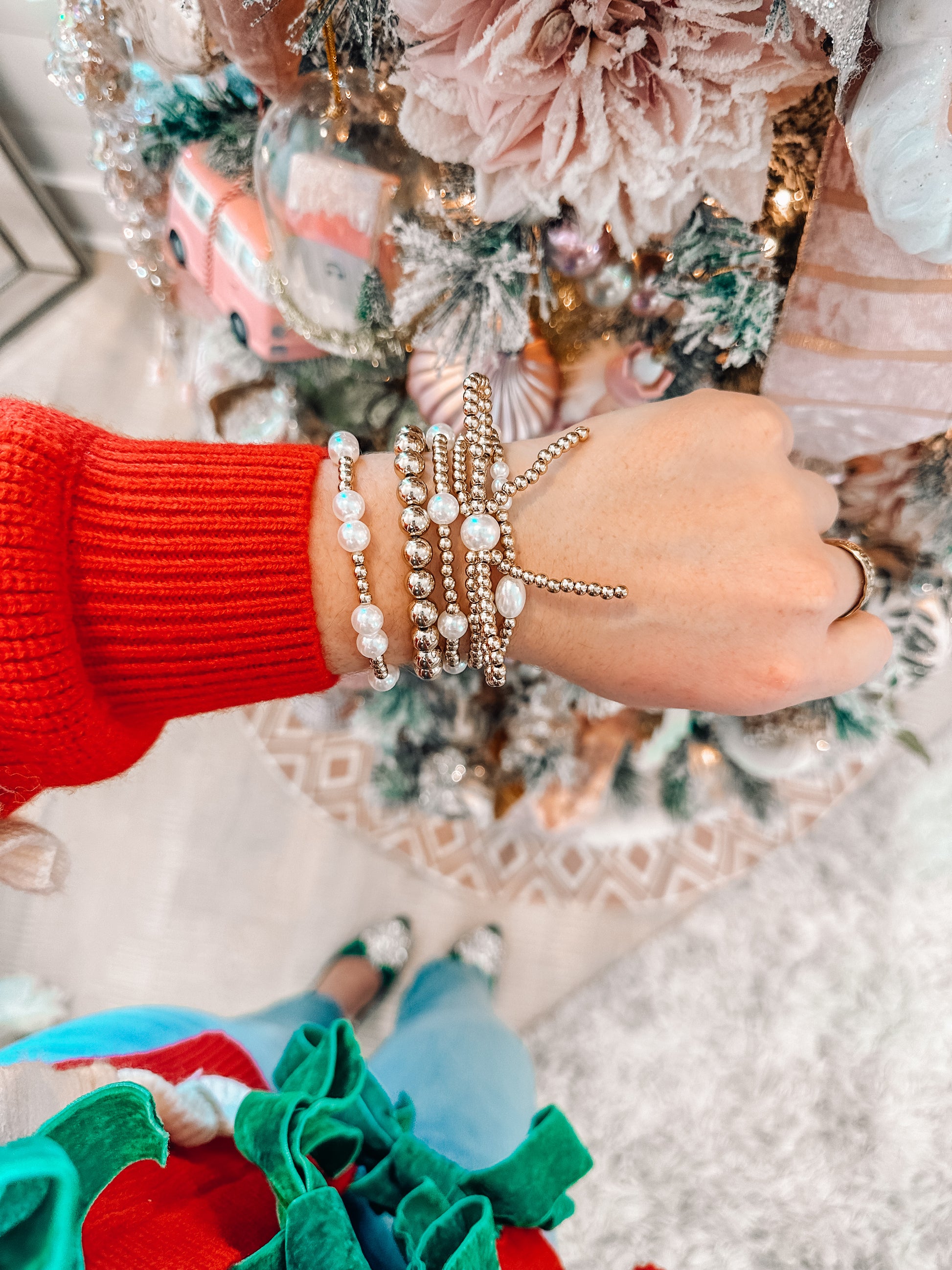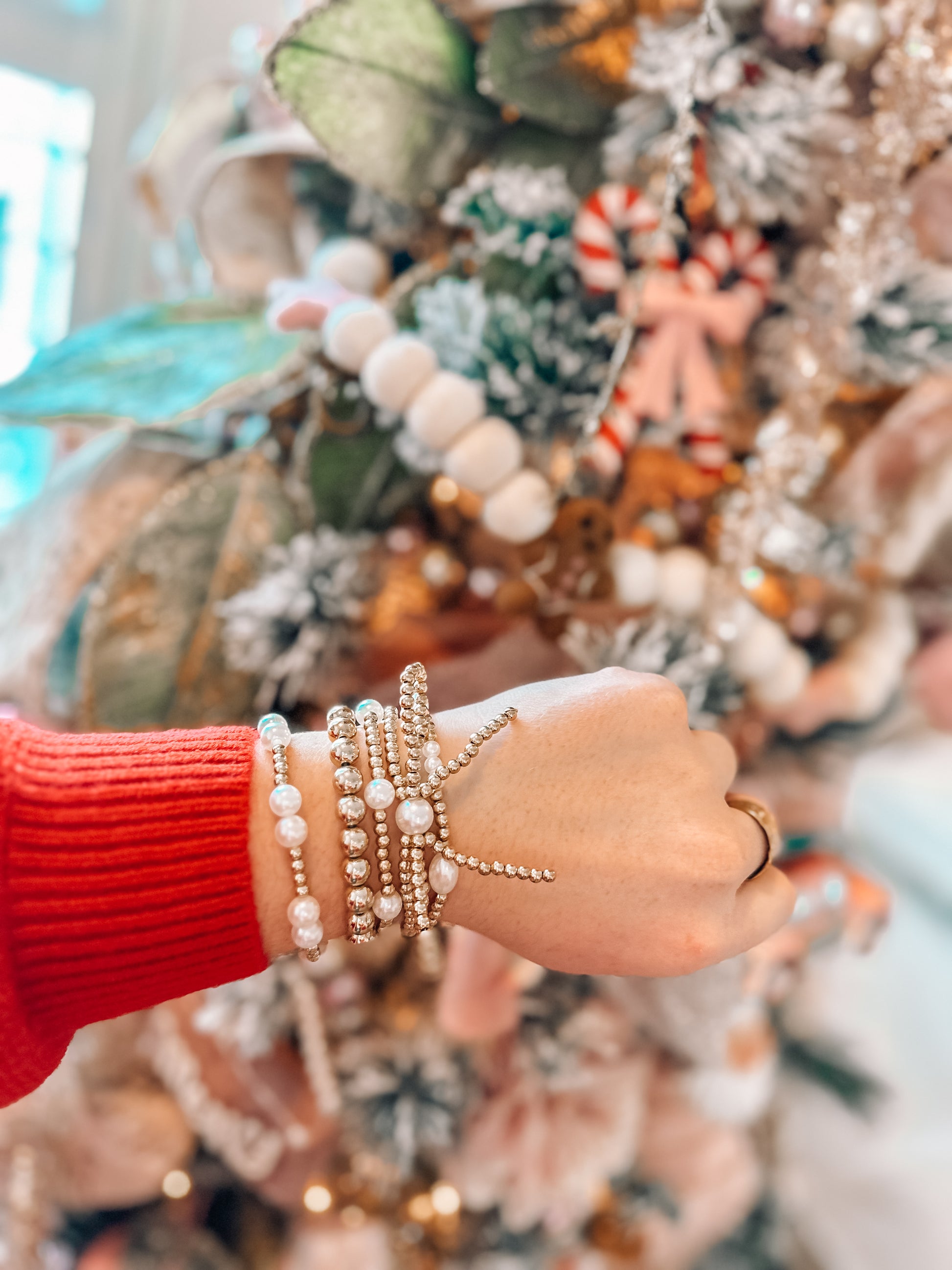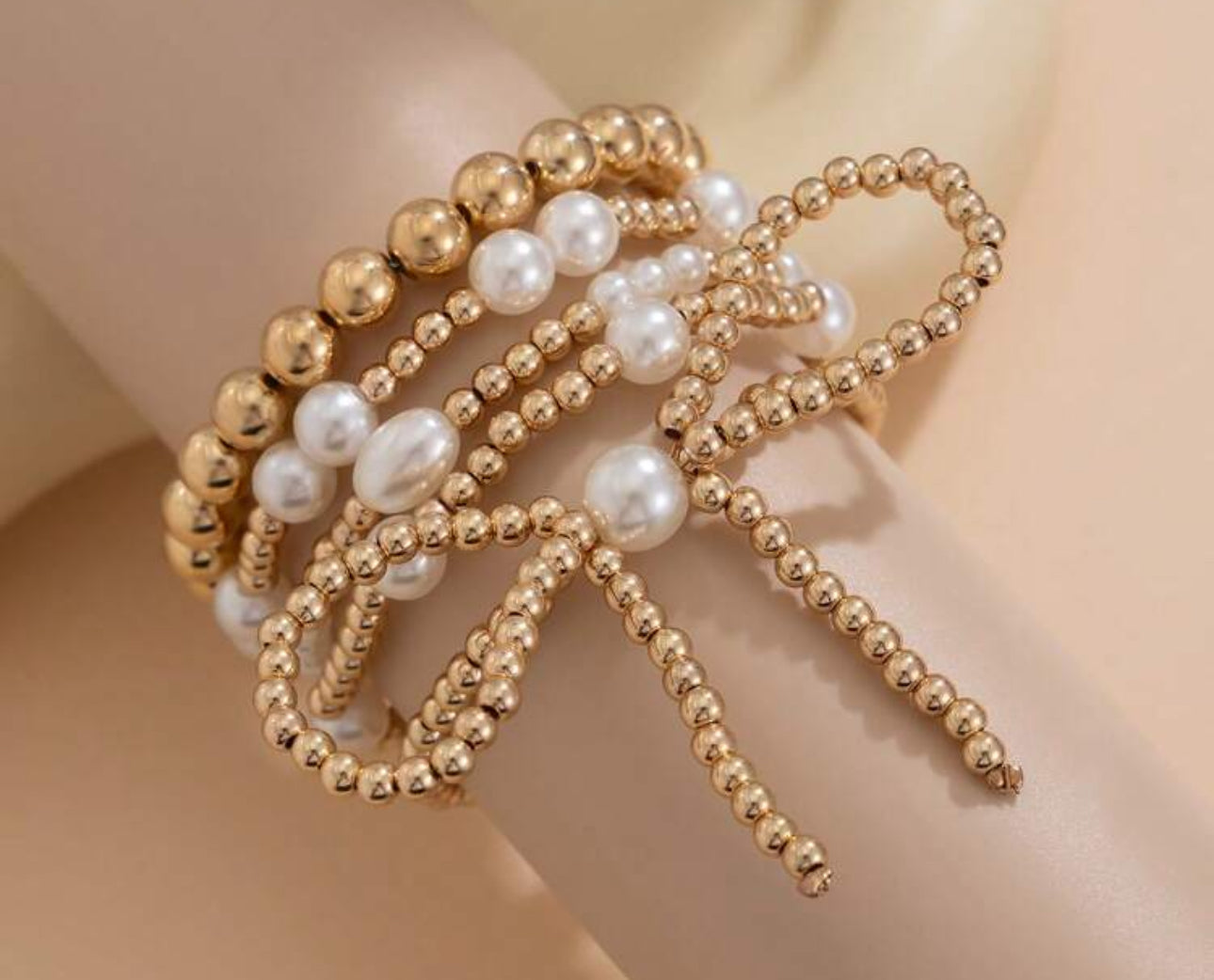 Adorned with lustrous pearls for a classic and sophisticated appeal.