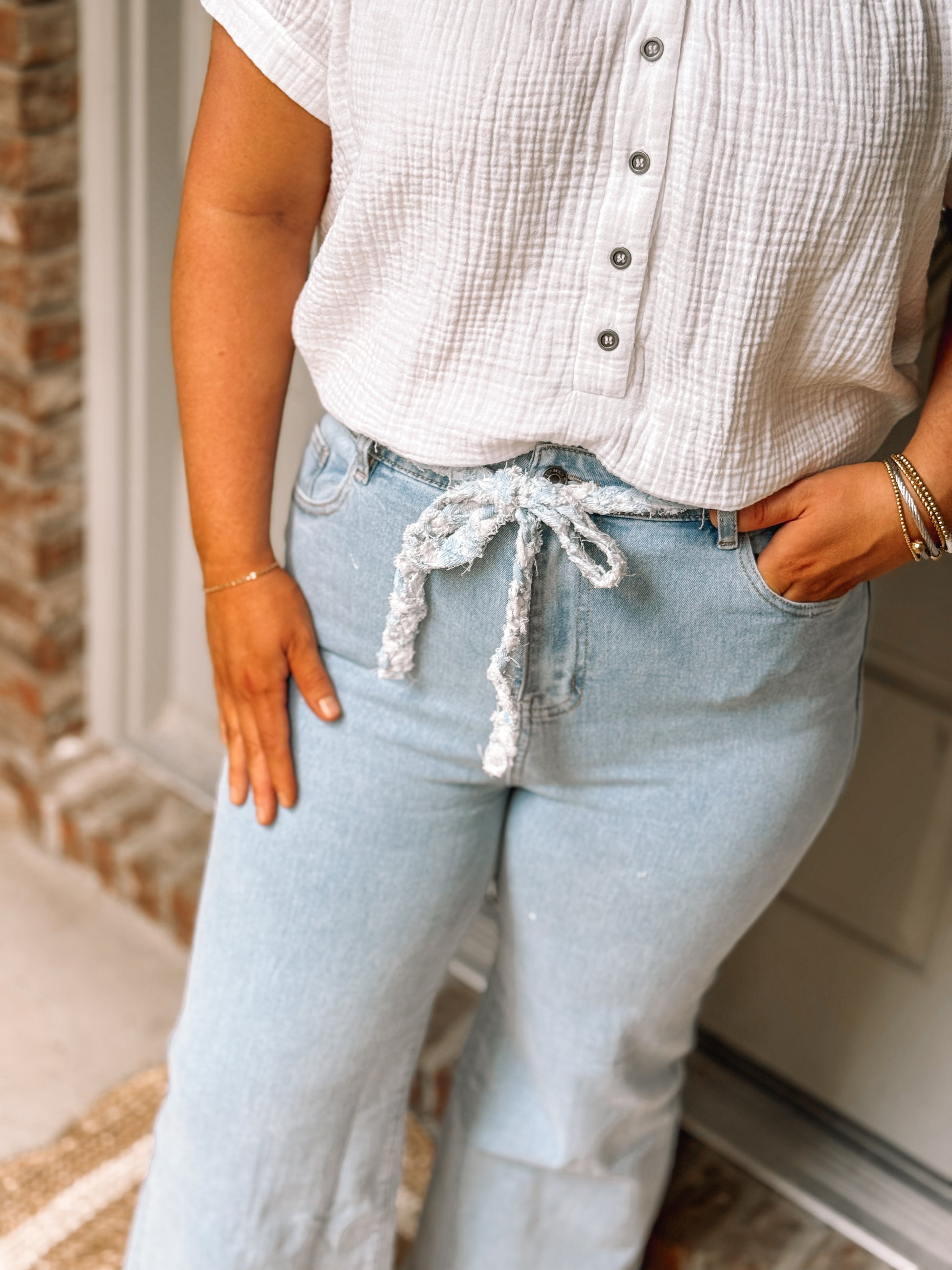 Elevate your denim collection with these impeccably tailored stretch flare jeans. The distinguishing sequin braided waist belt adds a touch of artisanal craftsmanship and subtle luminosity to this refined silhouette. Crafted from premium stretch denim that gracefully contours the figure, these jeans offer sophisticated ease of movement while the elegant flare creates a balanced proportion. A versatile investment piece that transitions seamlessly from day to evening occasions with understated distinction.