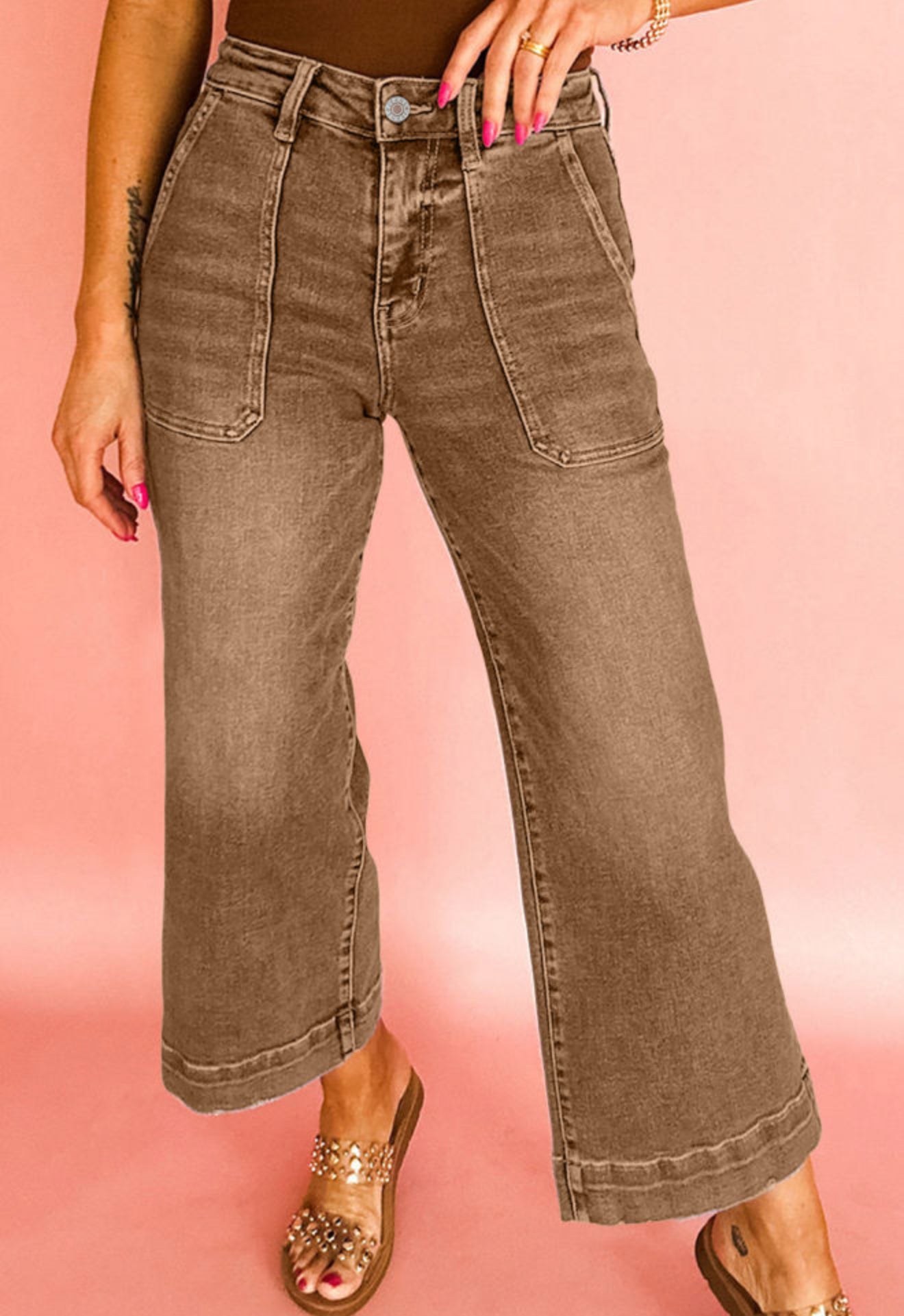 Brown Cropped High Rise Wide Leg Jeans - PREORDER