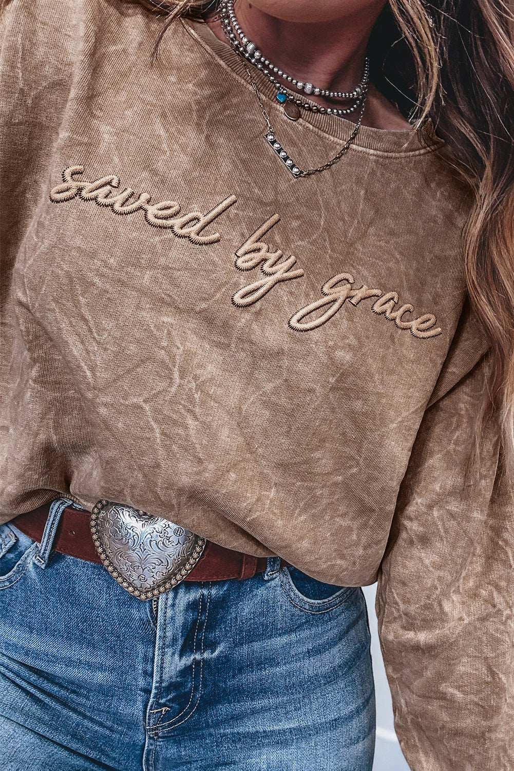 Experience effortless style and comfort with the DUNE saved by grace Letter Embroidery Mineral Wash Loose Sweatshirt. Crafted with a soft mineral wash fabric, this loose-fit sweatshirt offers a relaxed feel perfect for everyday wear. The delicate letter embroidery adds a subtle, meaningful touch, making it a standout piece in your casual wardrobe. Ideal for layering or wearing on its own, it combines cozy warmth with a trendy, lived-in look you'll love. Elevate your comfort and style effortlessly with this versatile sweatshirt.