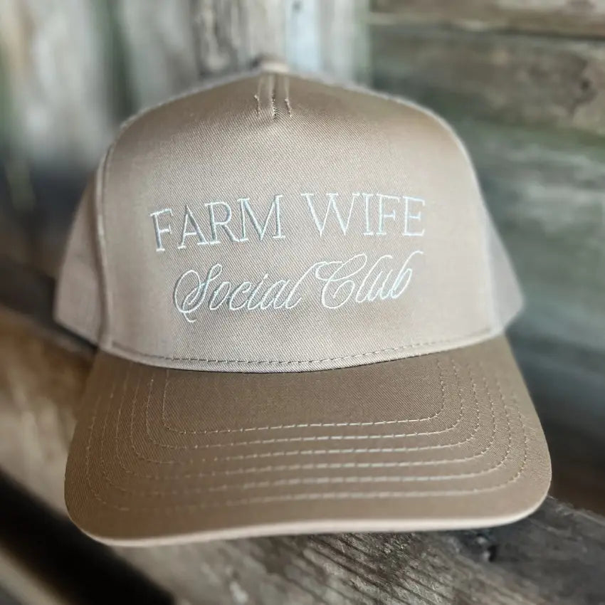 Farm Wife Social Club Trucker Hat with Mesh Back - Light Tan