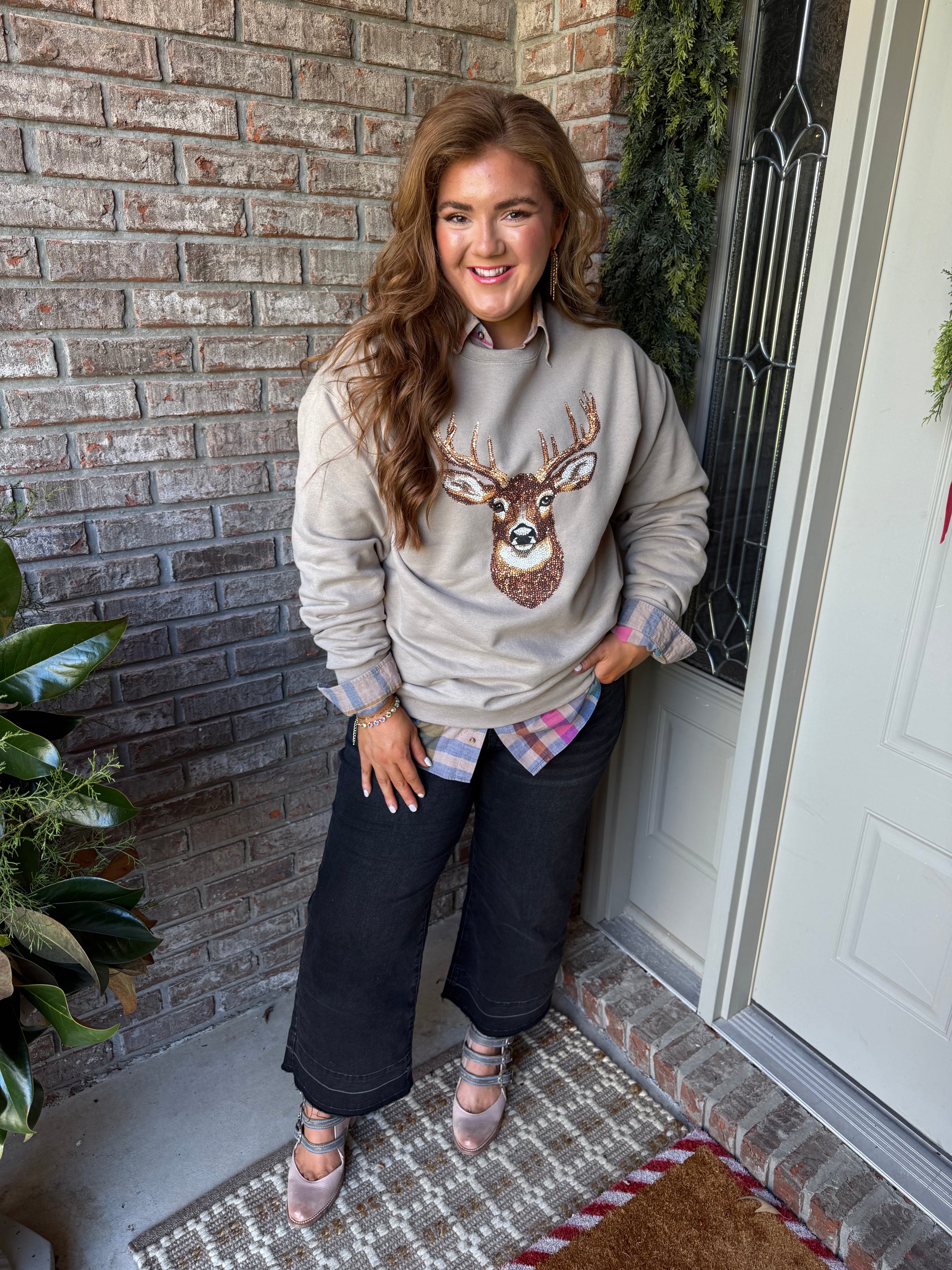 Faux Rhinestone Deer Sweatshirt - PREORDER
