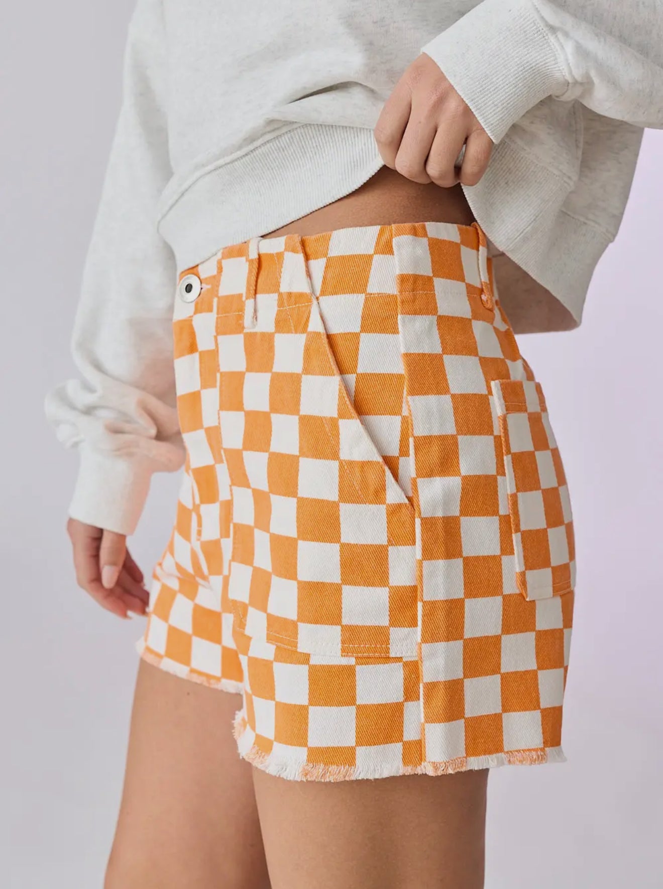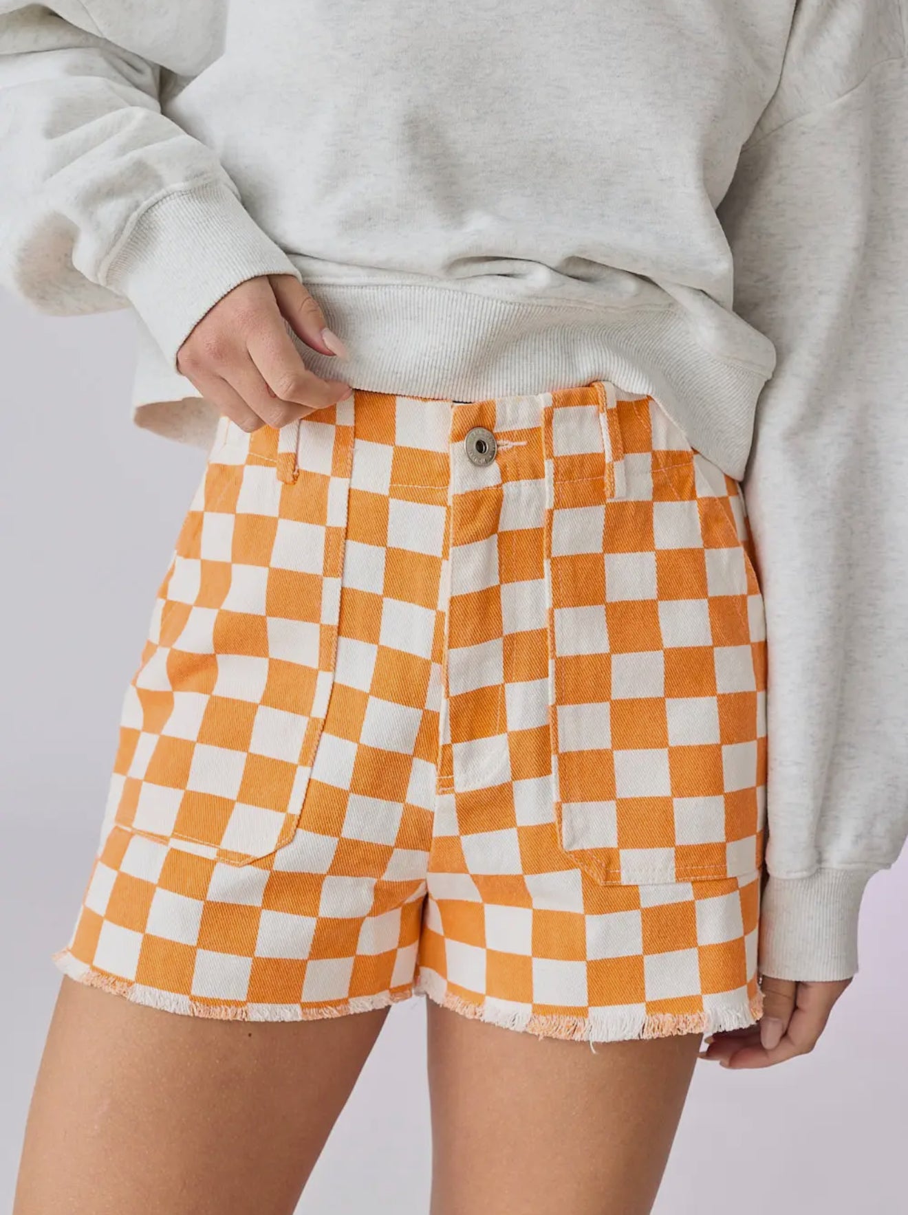 Raw Edge Detail -High Waisted -Front Pocket Design -Medium Weight Denim Fabric Waist 12 1/2 Length 14 1/4 Front Rise 13 1/4 Model's height is 5'9" and wearing a size S
