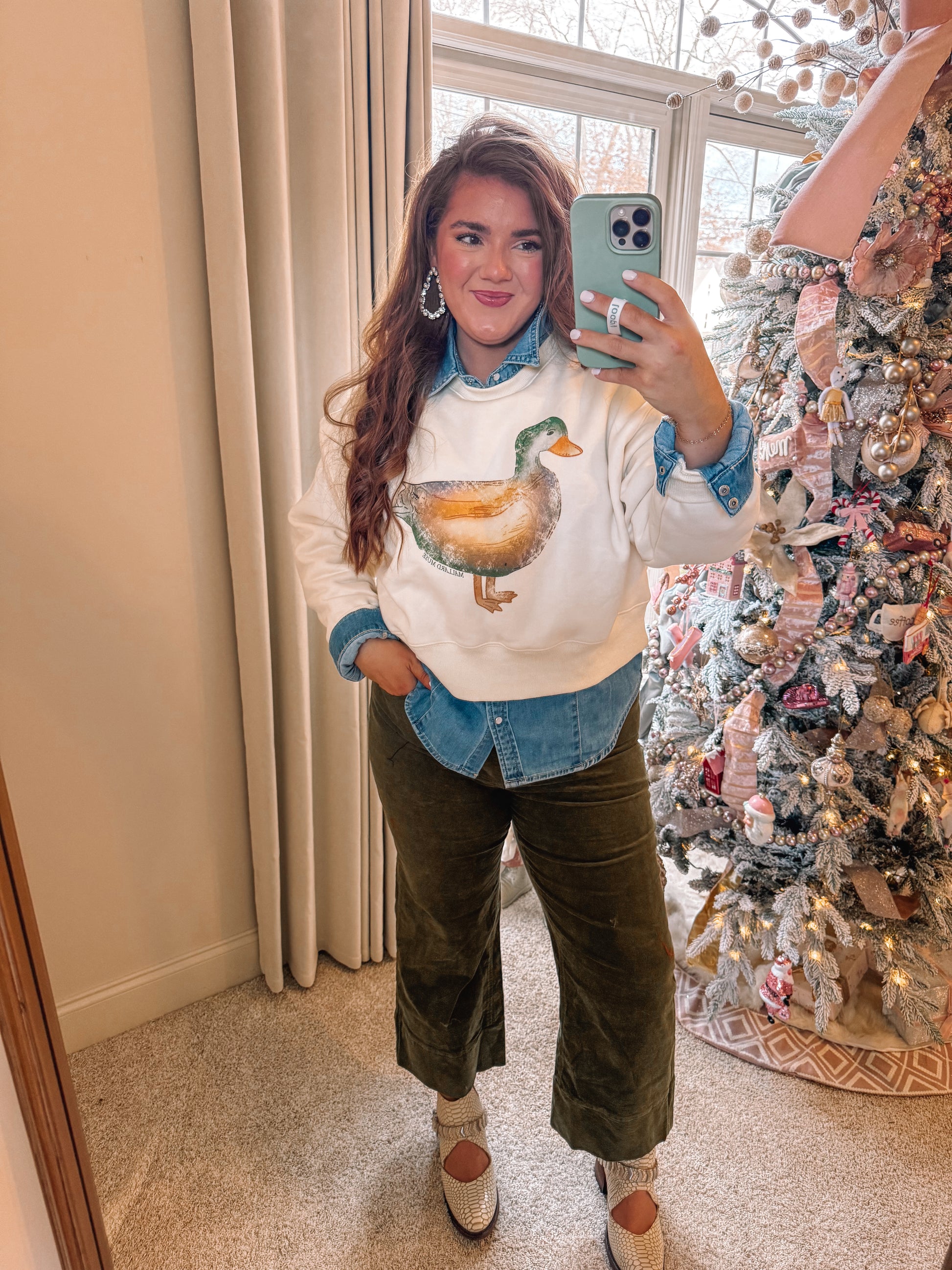Embrace effortless style with the Mallard Muse Crop Sweatshirt—a playful essential that brings personality to your everyday look. Crafted from a comfortable 50/50 cotton-poly blend, this cropped silhouette works beautifully layered over your favorite tees or worn solo for instant casual appeal. Whether you're running errands or meeting friends, this versatile piece delivers cozy comfort without compromising on charm. The perfect addition to any wardrobe that celebrates fun, laid-back fashion.