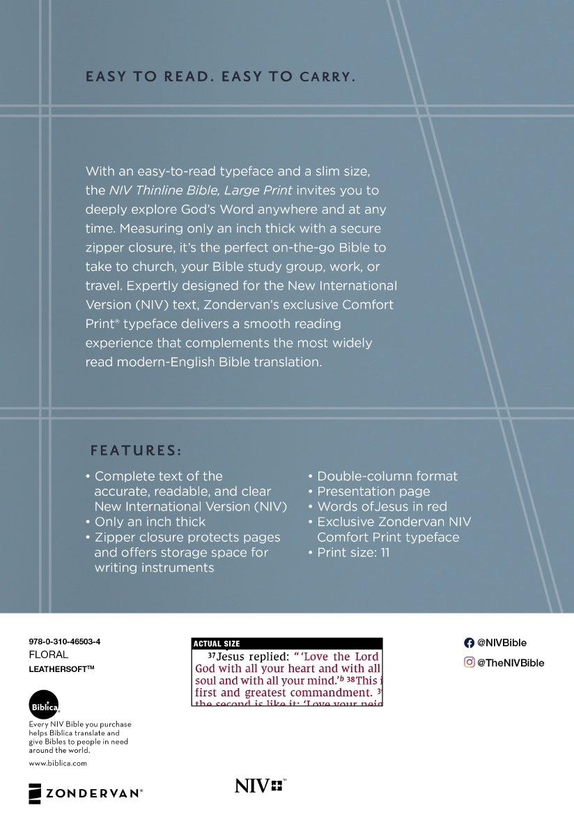 Niv Thinline Bible Large Print Leathersoft Floral, Zippered - PREORDER