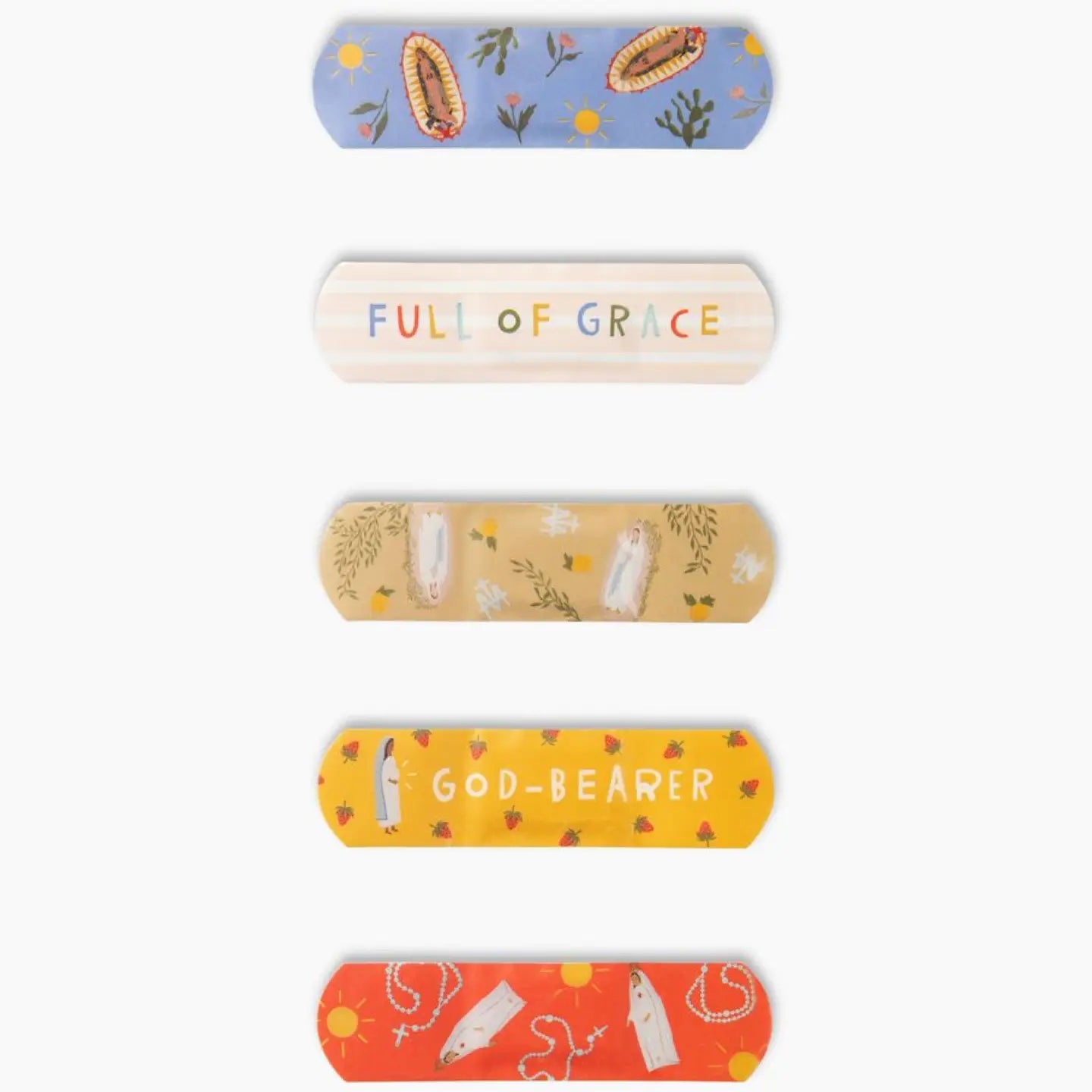 Our Lady Bandages transform everyday scrapes and cuts into meaningful moments of faith. This bestselling collection features 40 sterile adhesive strips adorned with 5 beautiful religious designs, each housed in a charming reusable tin box. Crafted with latex-free, water-resistant materials, these bandages work for the whole family—from children's playground mishaps to adult life's little accidents. Once empty, repurpose the elegant tin for crayons, buttons, or treasured keepsakes. Bring comfort and spiritual grace to your medicine cabinet today.