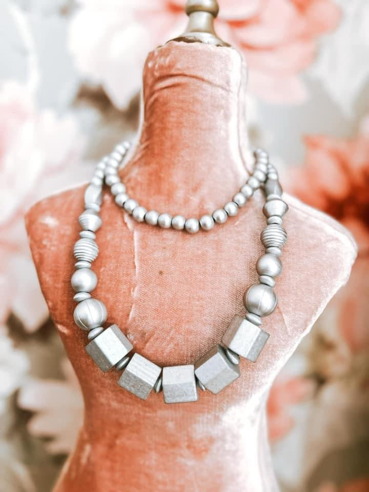 Enhance your look with our stunning Silver Beaded Necklace. The intricate beadwork adds elegant shimmer to any outfit, perfect for any occasion. Made with high-quality materials, this necklace is sure to become a staple in your collection. Elevate your style and make a statement with our Silver Beaded Necklace.