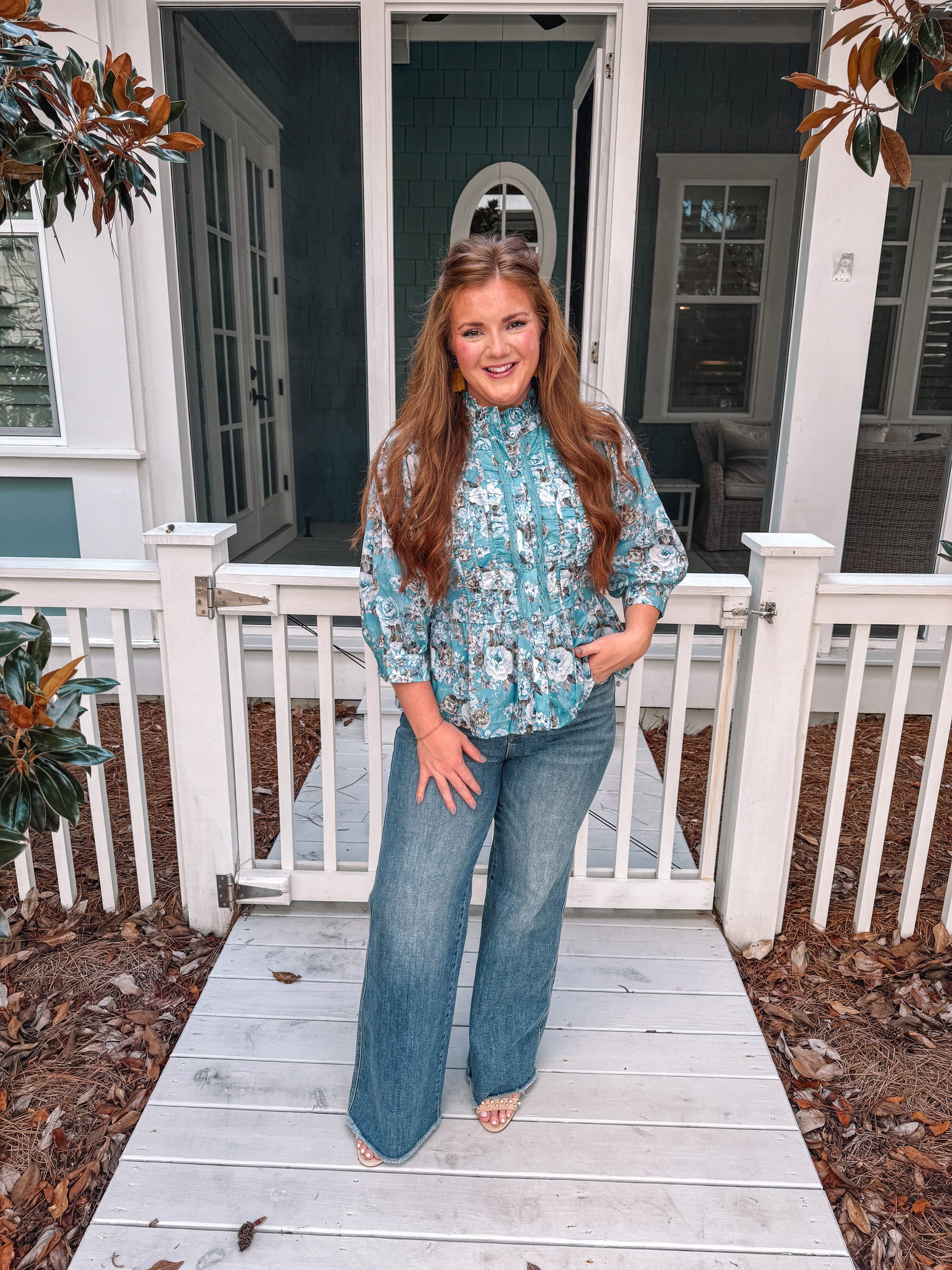 Elevate your wardrobe with the Sweetheart Manor Ruffle Blouse, designed to blend timeless charm with delicate details. Featuring a floral print and flattering ¾ sleeves with ruffle hems, this lightweight woven top offers a high neck with elegant button closure and subtle ruching accents for a refined silhouette. Non-sheer and unlined, it delivers comfortable wear with a graceful finish—perfect for adding a touch of romance to any outfit.