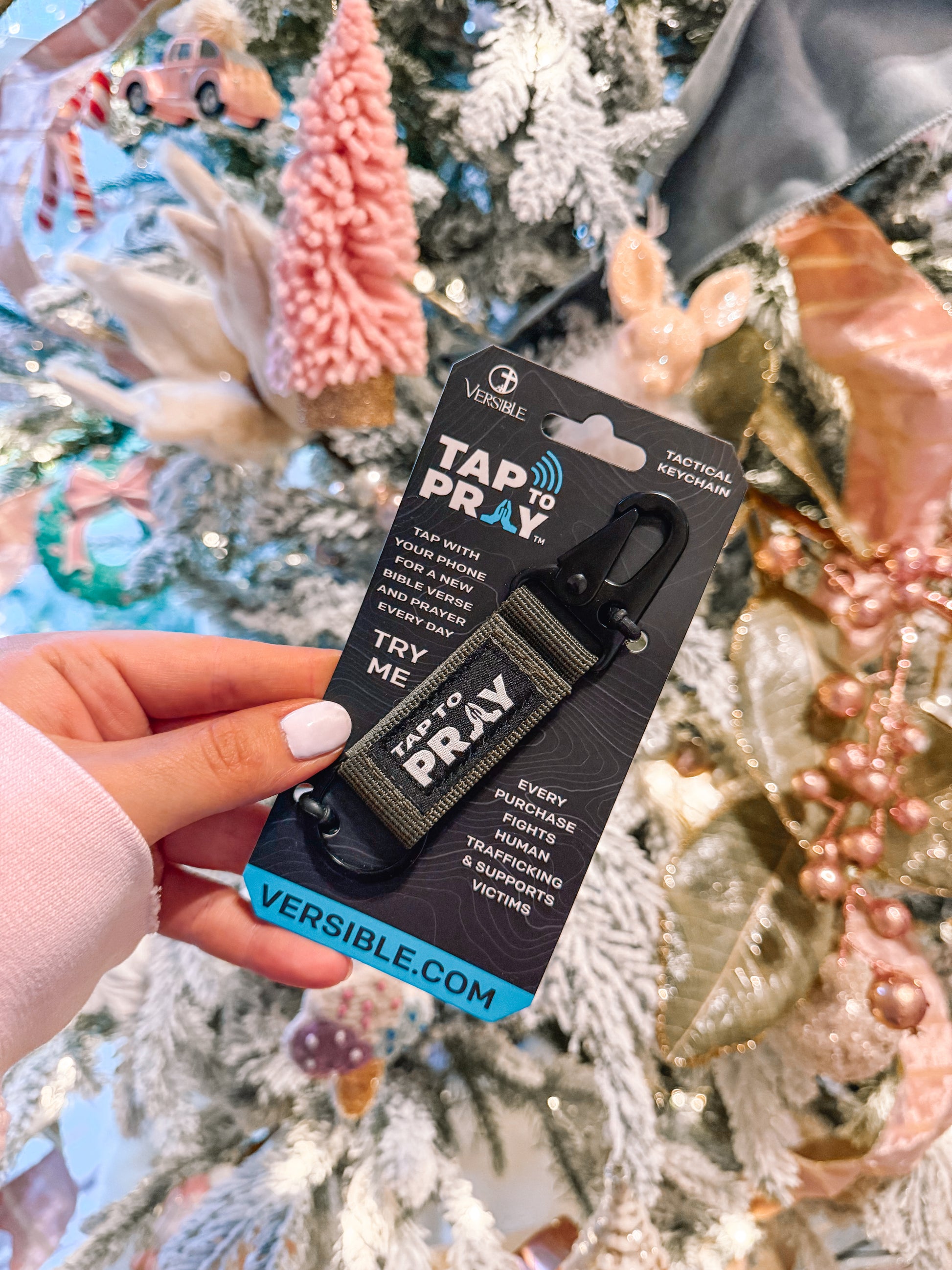 Tap into daily inspiration with Versible's Tap To Pray™ Tactical Keychain. Simply tap the patch with your smartphone to unlock a fresh Bible verse and prayer each day—no app download needed. Built tough with a black metal carabiner, hook & loop strap, and key ring, this versatile keychain attaches seamlessly to your keys, bag, belt loop, or gear. Carry your faith wherever you go while supporting a cause that matters. Every purchase directly fuels Versible's fight against human trafficking, making your everyday carry a force for good.