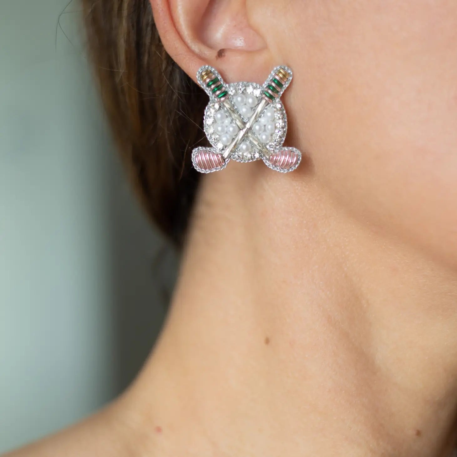 Get ready to hit the green in style with Tee Time Golf Earrings! These lightweight and comfortable stud earrings feature intricate bead work, pearls, and stones in subtle colors that will match any outfit. Perfect for golf enthusiasts or anyone attending a golf event. These make a unique and thoughtful gift. (Original design with gold plated hardware.)
