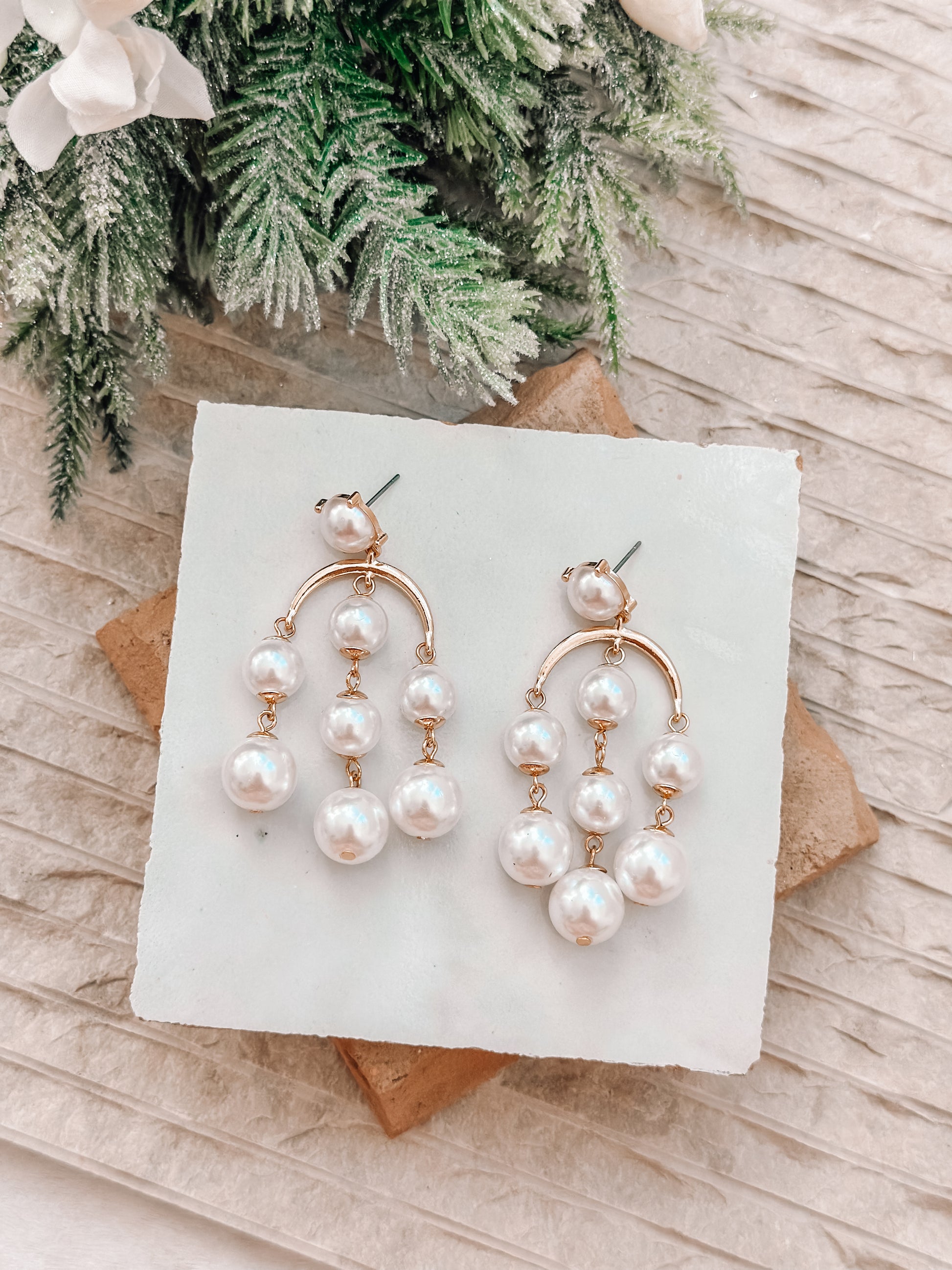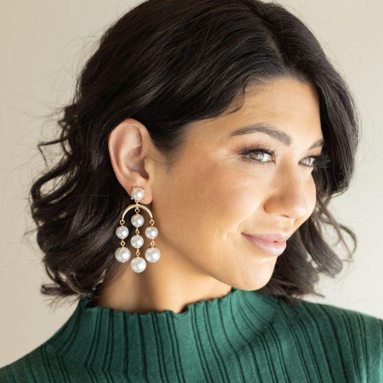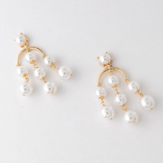Indulge in pure elegance and beauty with our gold earrings featuring faux pearls. The perfect combination for any occasion! 2.5 inches in length.